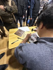 会場には地方の板金屋さんが集まって銅板で表札作りの研修会です。